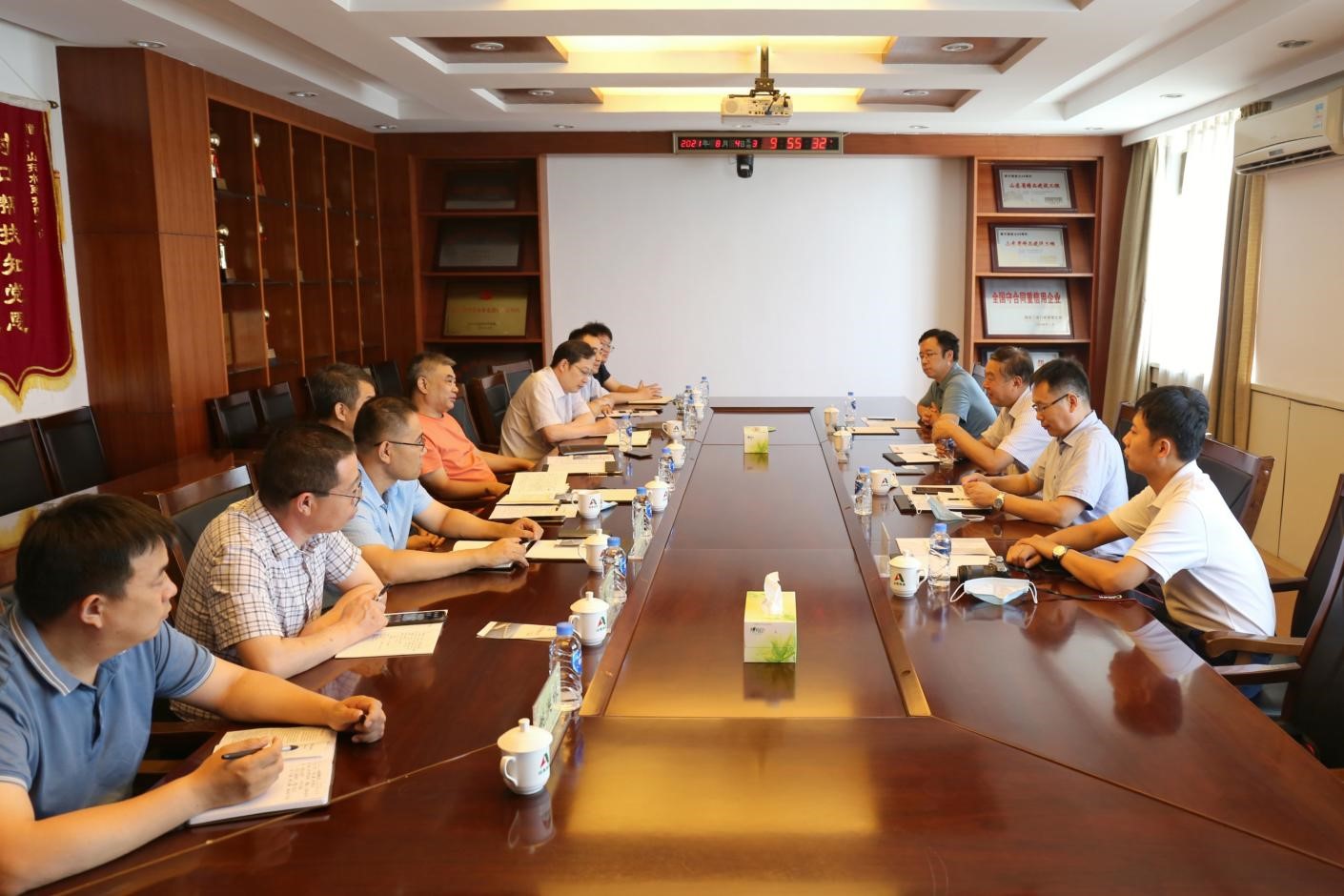 8月4日上午,山东水利职业学院党委副书记、院长于纪玉,水利工程系主任甄红锋,水利工程系副主任刘东峰到完美体育唯一官网_完美体育(中国)体育官方网进行调研,完美体育唯一官网_完美体育(中国)体育官方网党委书记、董事长刘深远,党委副书记、总经理李光市,党委委员、副总经理杜贞义,安全总监郭法文及多个部门负责人出席了本次调研会议。