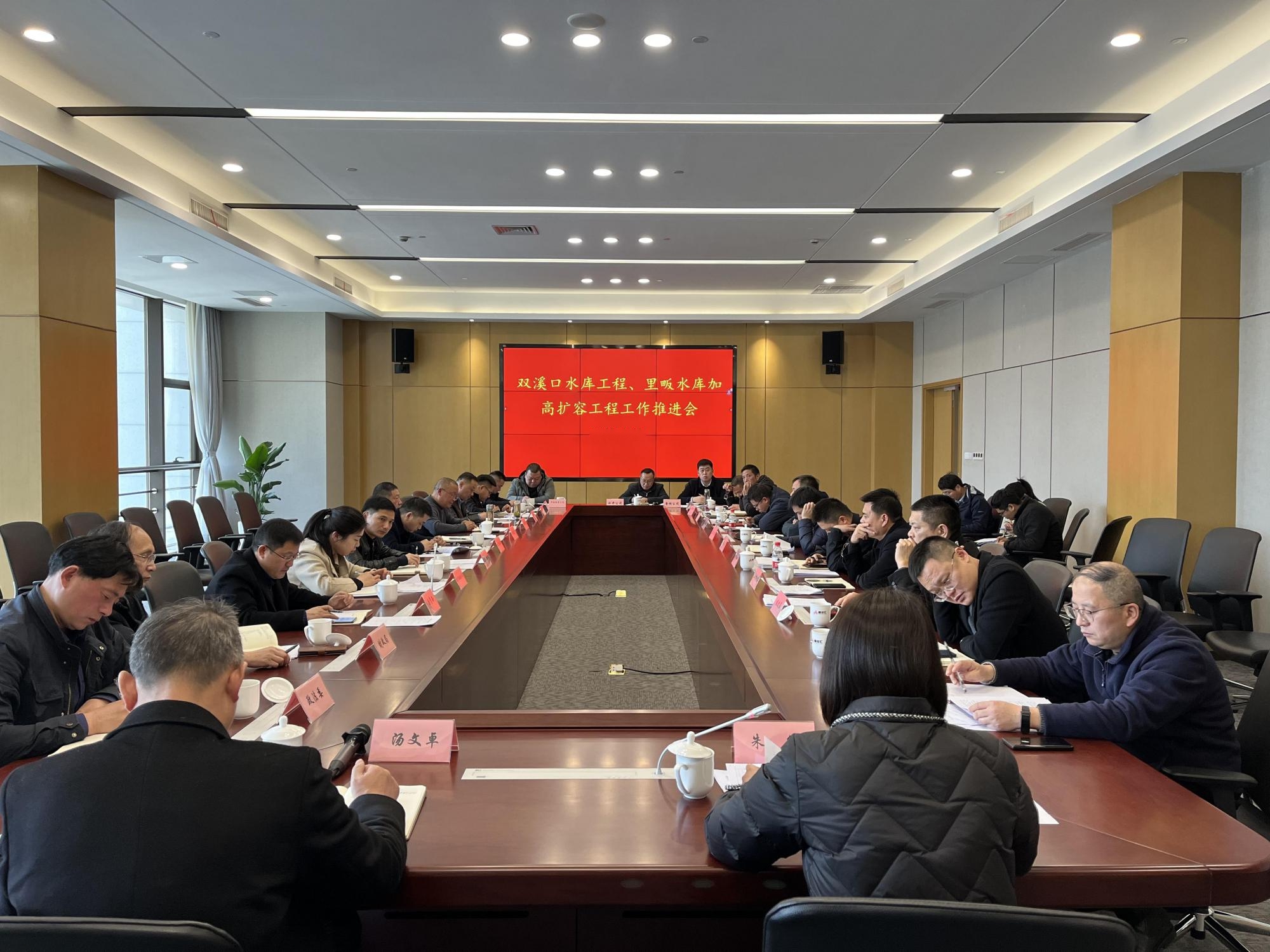 2月17日下午,杭州临安区政府办公室副主任、两库指挥部副总指挥朱华主持召开双溪口水库工程建设推进会。
