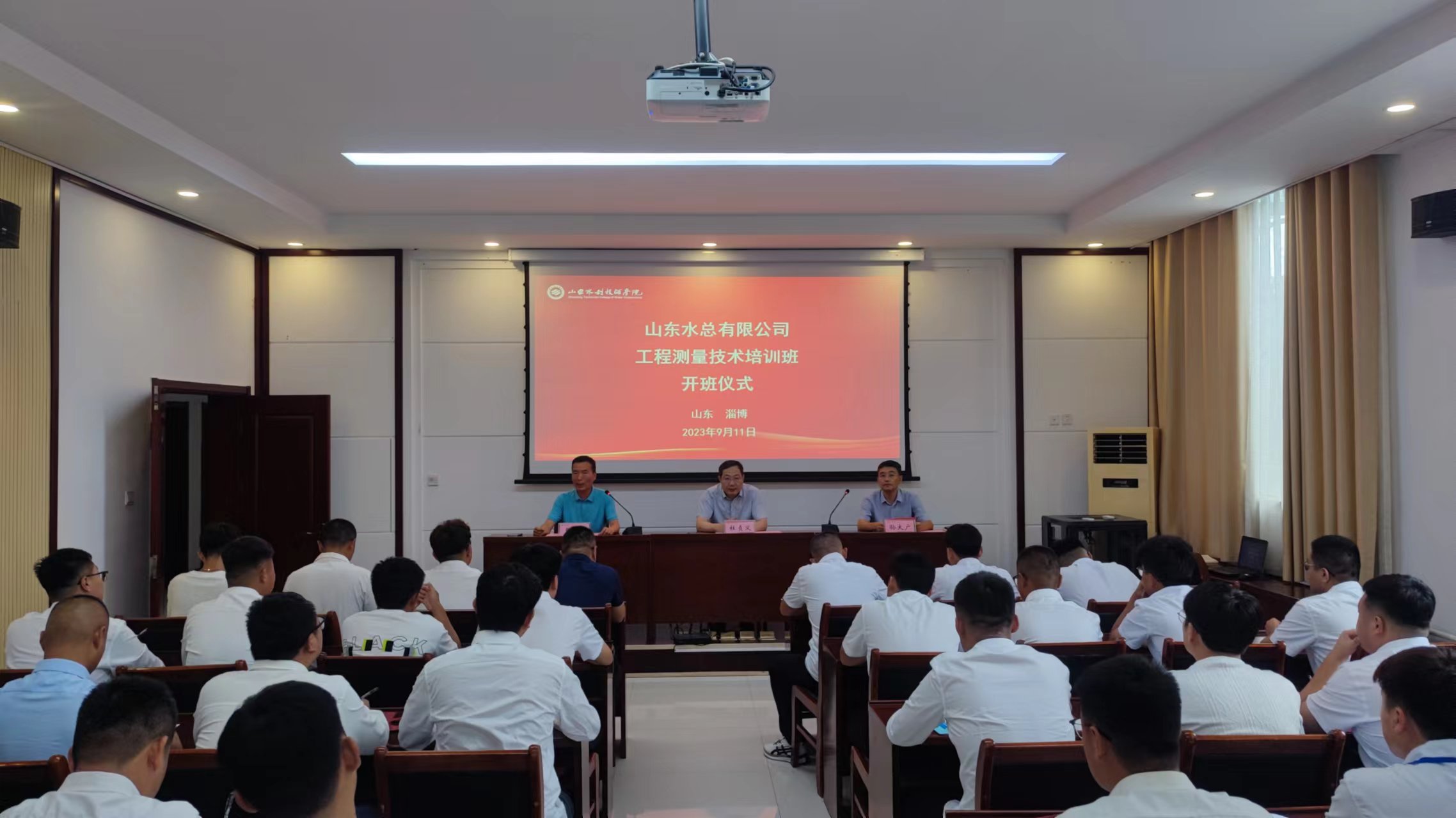 9月11日,完美体育唯一官网_完美体育(中国)体育官方网2023年工程技术测量培训班在山东水利技师学院顺利开班,完美体育唯一官网_完美体育(中国)体育官方网党委委员、副总经理杜贞义,山东水利技师学院党委委员、高级技工部主任孙大广出席培训班开班仪式,仪式由山东水利技师学院培训处副主任张岩主持。来自完美体育唯一官网_完美体育(中国)体育官方网各权属单位30名测量人员参加本次为期5天的全脱产学习。