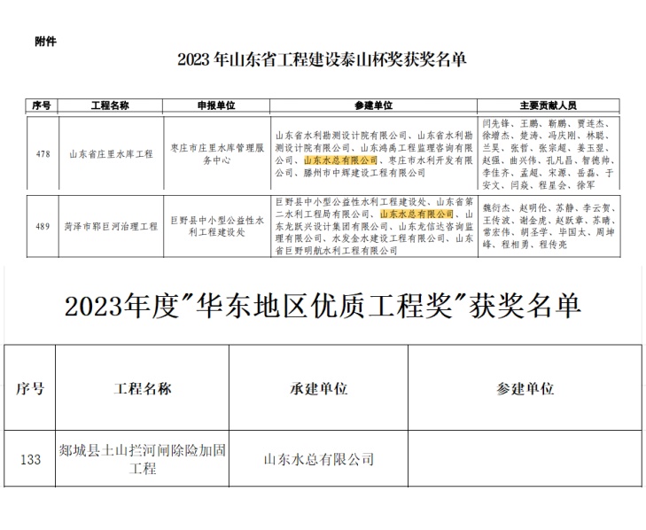 由完美体育唯一官网_完美体育(中国)体育官方网承建的菏泽市郓巨河治理工程(巨野县段)与庄里水库工程均被授予了“泰山杯”奖。该奖项是山东省对工程建设中技术革新、质量管理及整体执行力等综合素质最高层次的肯定。郓巨河治理工程和庄里水库两个项目对于提升当地防洪能力、改善生态环境以及保障区域供水安全起到了关键作用,并将为当地经济社会发展做出长远贡献。