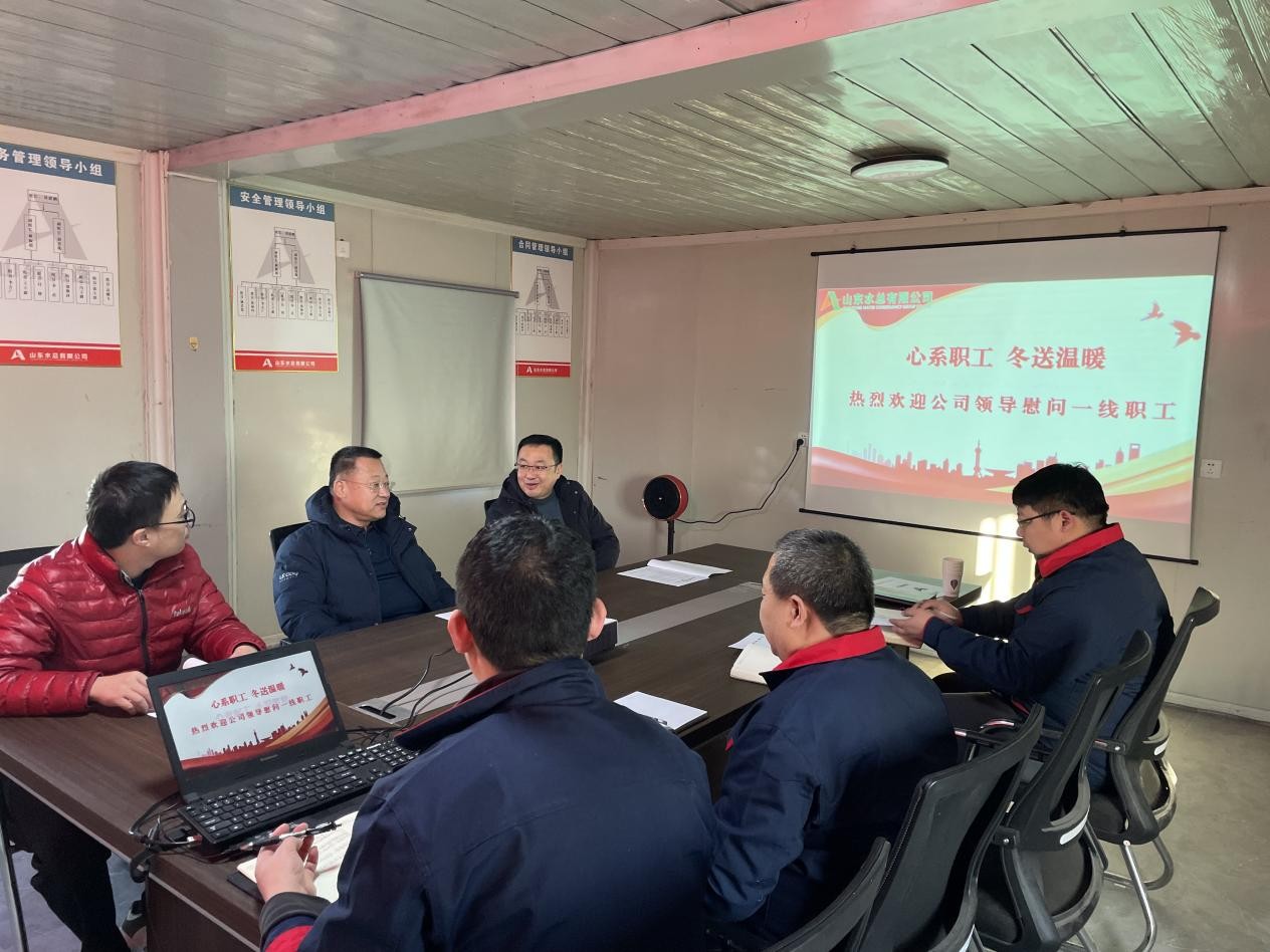 1月9日,完美体育唯一官网_完美体育(中国)体育官方网党委副书记、职工董事、工会主席王坤林一行莅临第二分完美体育唯一官网_完美体育(中国)体育官方网漳卫河聊城段综合治理(引调水)工程施工1标项目部开展“心系职工,冬送温暖”慰问活动,党委组织部副部长王春华、第二分完美体育唯一官网_完美体育(中国)体育官方网副总经理姚忠慧、郝振超陪同。