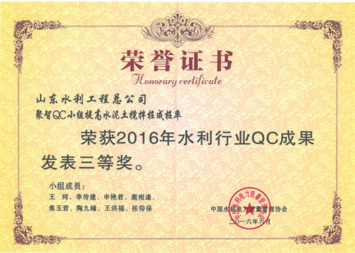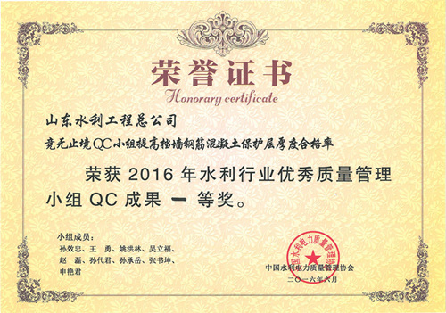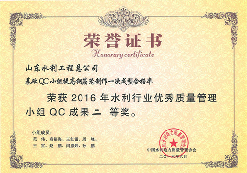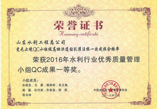 完美体育唯一官网_完美体育(中国)体育官方网“提高排洪道钻孔灌注桩一次成桩合格率”等四项成果荣获2016年水利行业优秀质量管理小组QC成果奖