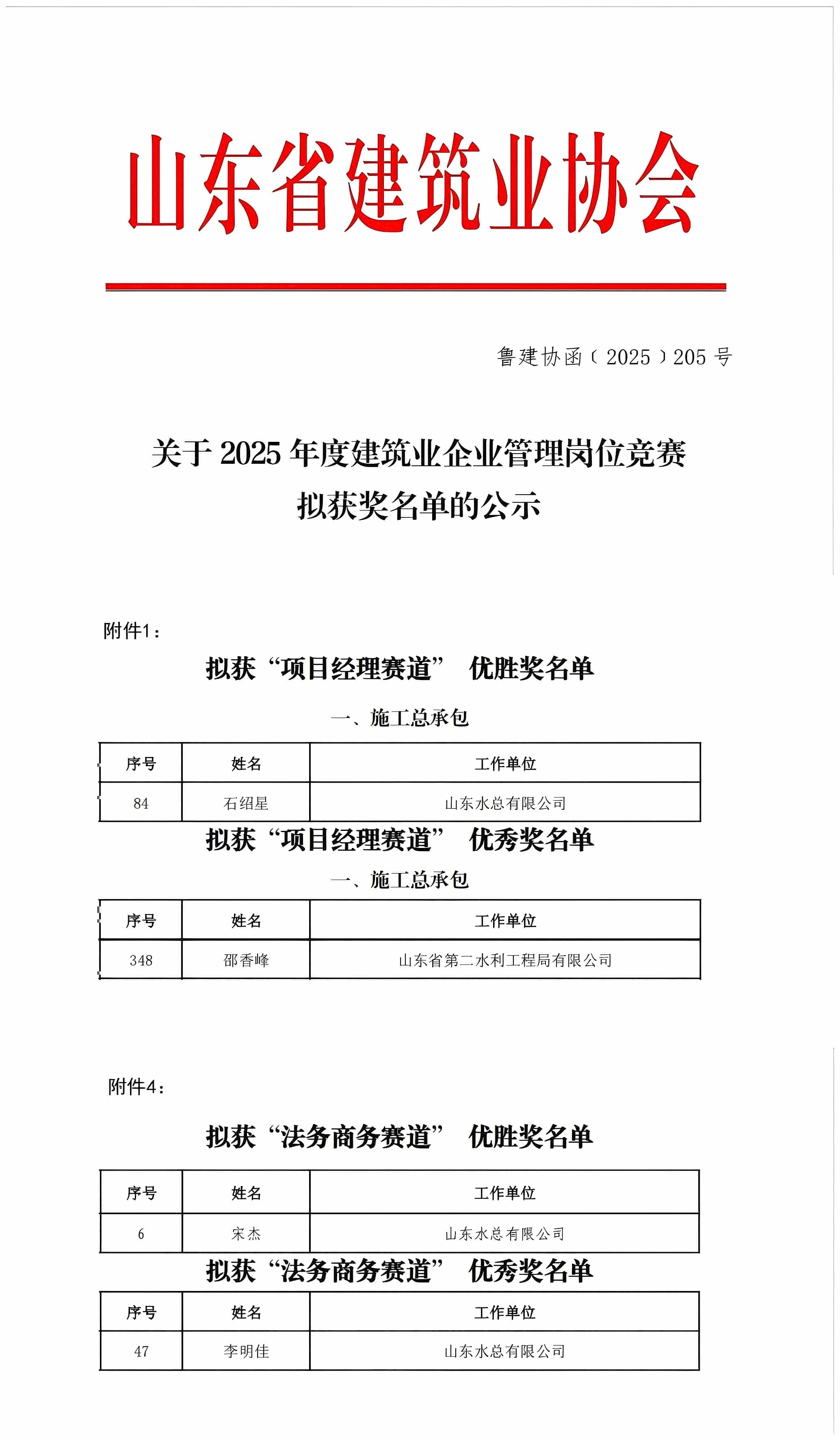 近日,由山东省建筑业协会发起的2025年度建筑业企业管理岗位竞赛圆满落幕,完美体育唯一官网_完美体育(中国)体育官方网选送的参赛人员凭借扎实的专业素养、精湛的管理能力脱颖而出,在“项目经理赛道”中,第三分完美体育唯一官网_完美体育(中国)体育官方网石绍星获优胜奖,二局有限完美体育唯一官网_完美体育(中国)体育官方网邵香峰获优秀奖;在“法务商务赛道”中,企业管理部宋杰获优胜奖,第三分完美体育唯一官网_完美体育(中国)体育官方网李明佳获优秀奖。以上荣誉的获得充分彰显了完美体育唯一官网_完美体育(中国)体育官方网建筑行业管理岗位人才的专业素养与创新活力。