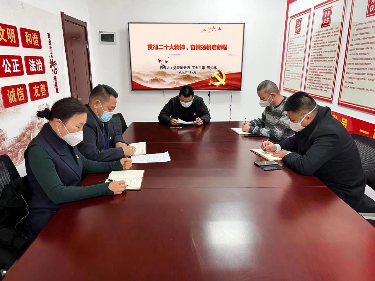 12月29日下午, 完美体育唯一官网_完美体育(中国)体育官方网党委副书记、工会主席周少林以“贯彻二十大精神,奋楫扬帆启新程”为题,为建筑劳务完美体育唯一官网_完美体育(中国)体育官方网党员们讲授专题党课。党课全面深入阐述了“党的二十大召开主题、重大意义、结合工作实际如何落实二十大精神”等三个方面的内容。