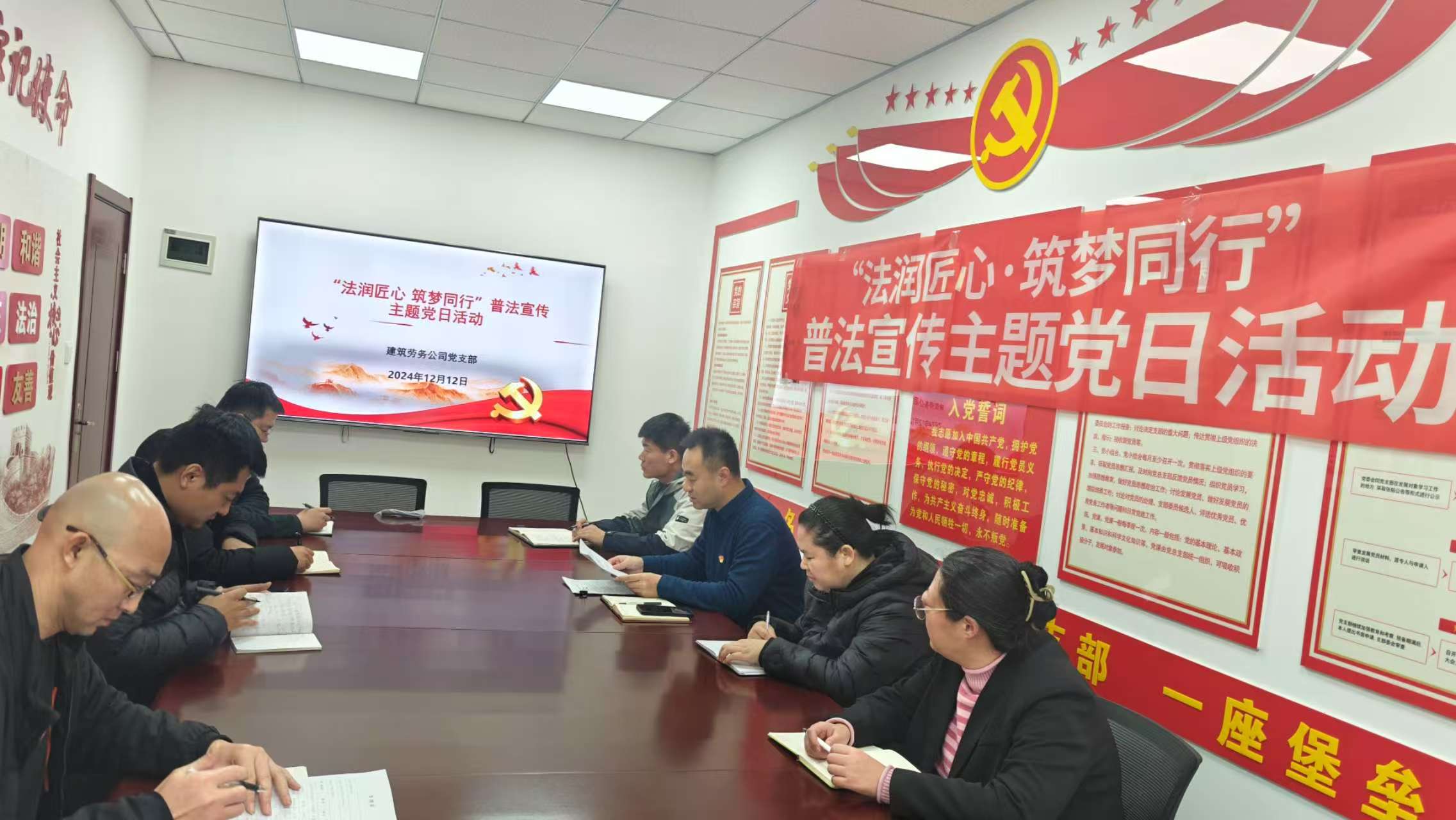 为深入学习习近平法治思想和习近平文化思想,弘扬宪法和法治精神,打造法治国企,12月12日,建筑劳务完美体育唯一官网_完美体育(中国)体育官方网党支部组织开展“法润匠心 筑梦同行”普法宣传主题党日活动。
